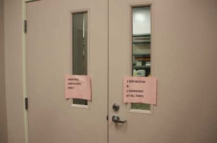 Ohio’s county boards of elections are divided evenly between the two major political parties. In Franklin County, officials keep party-apportioned keys in a lockbox and require one of each to open certain doors, an approach more common with oversight of nuclear weapons. Photo: Nicholas Kusnetz/Center for Public Integrity